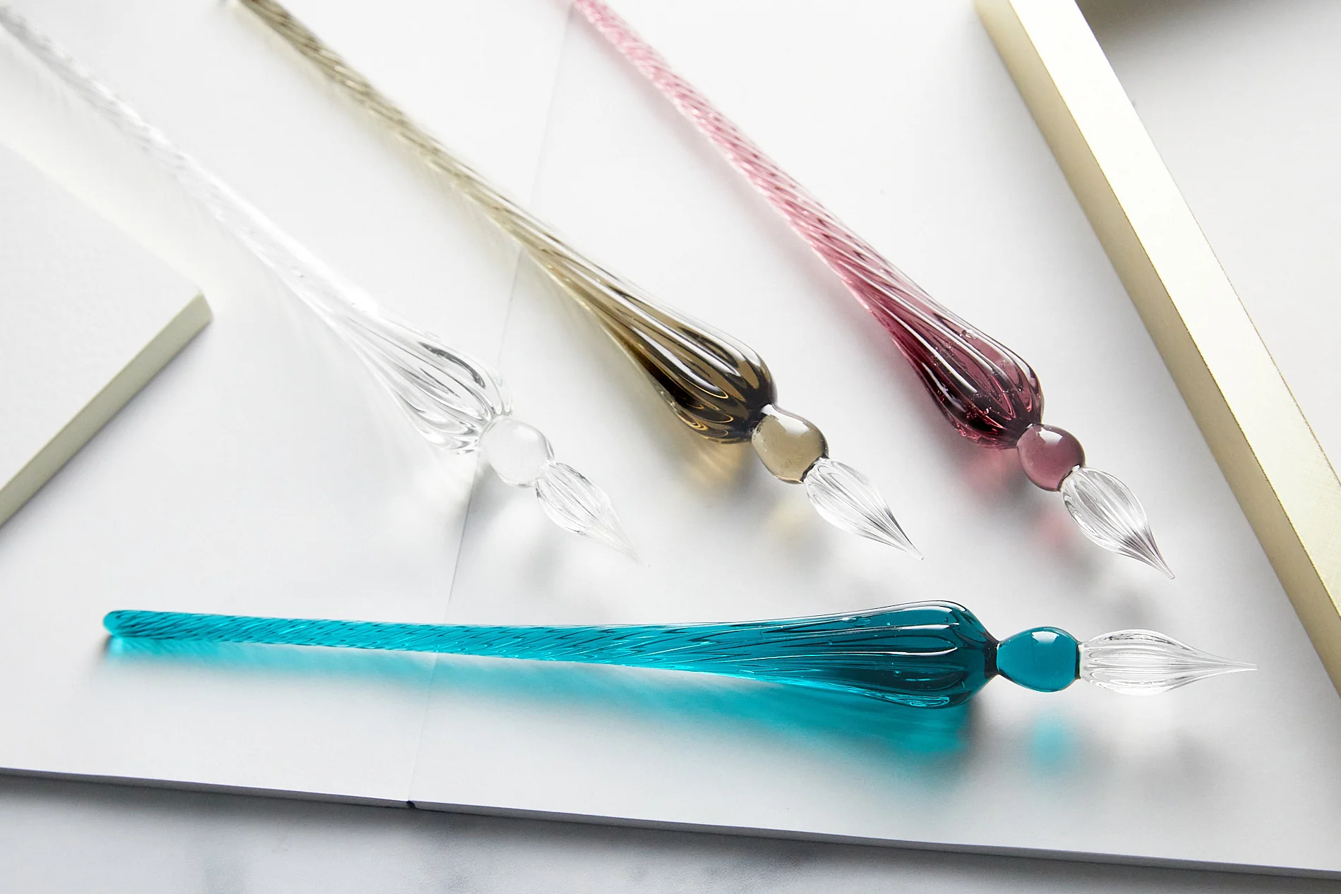 This hand-blown Herbin round glass dip pen is made in the tradition of 16th-century Venice. Each pen is an individual work of art. The fine glass tips are twisted in a light spiral to hold the maximum amount of ink. Glass dip pens are great for both fountain pen ink or calligraphy/dip pen ink!