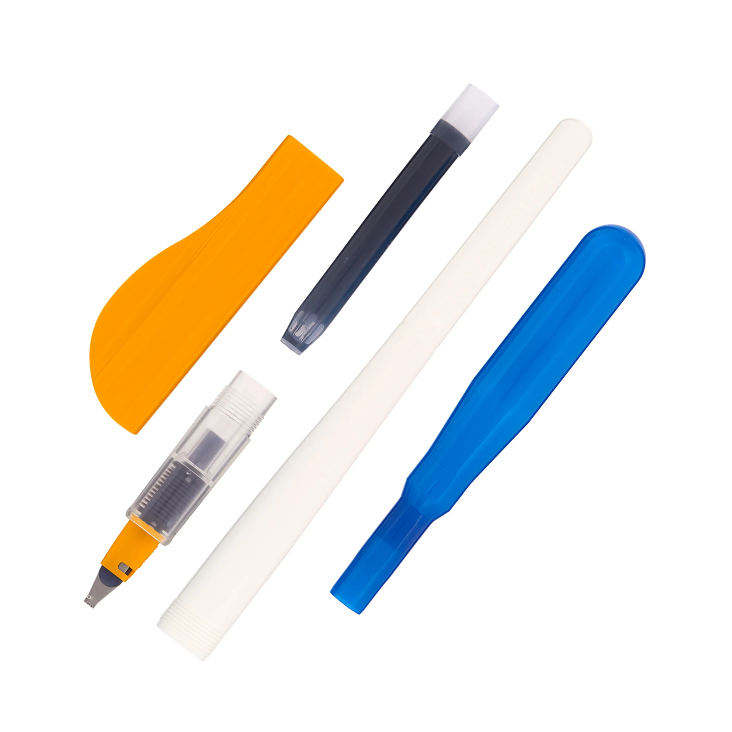The Pilot Parallel fountain pen is a major breakthrough in calligraphy pen design. The unique parallel plate structure achieves a more beautiful and sharper handwriting than existing calligraphy pens. This product comes with a Parallel pen with a 2.4mm stub italic nib, one black and one red ink cartridge, a converter to flush the pen, and a nib cleaner.